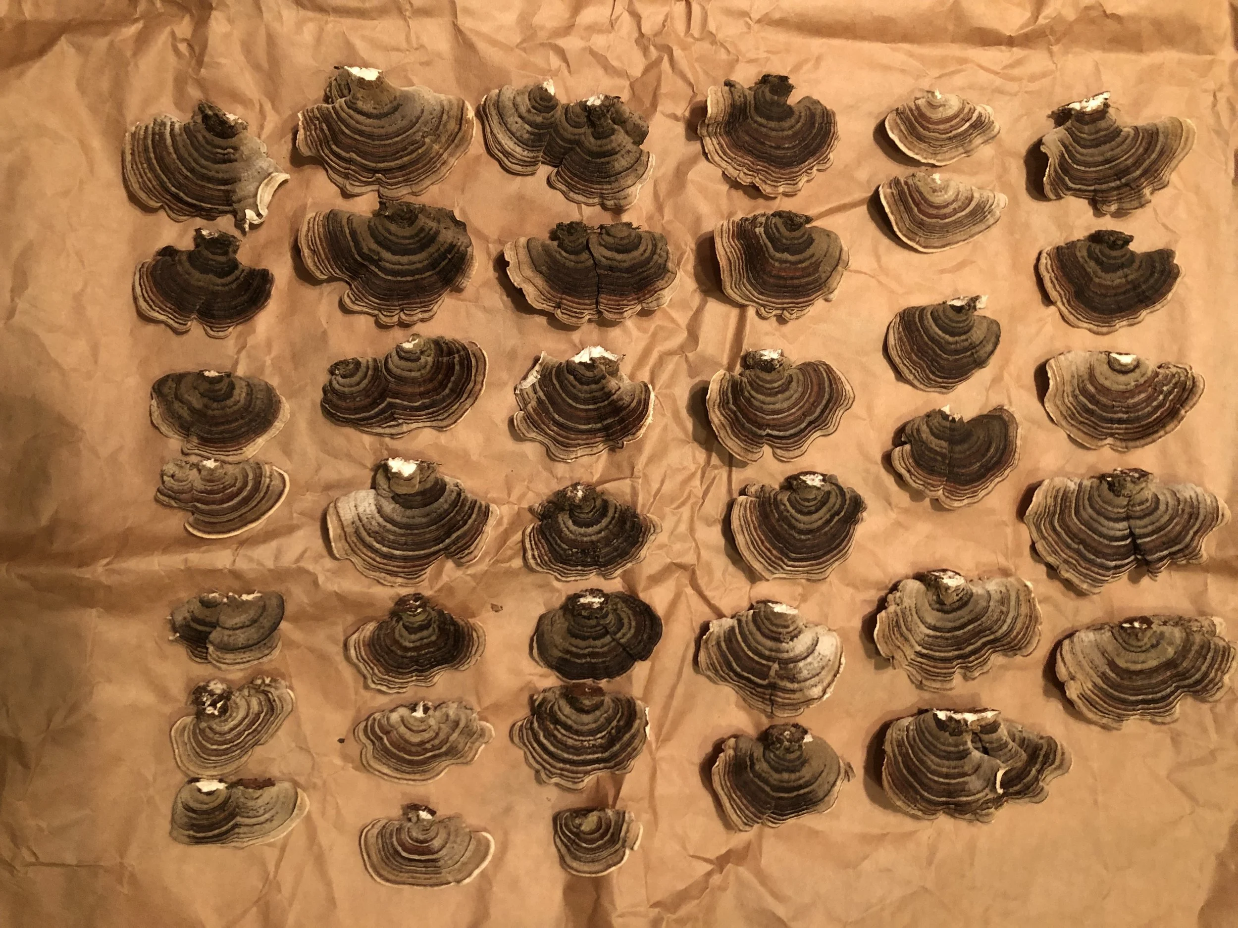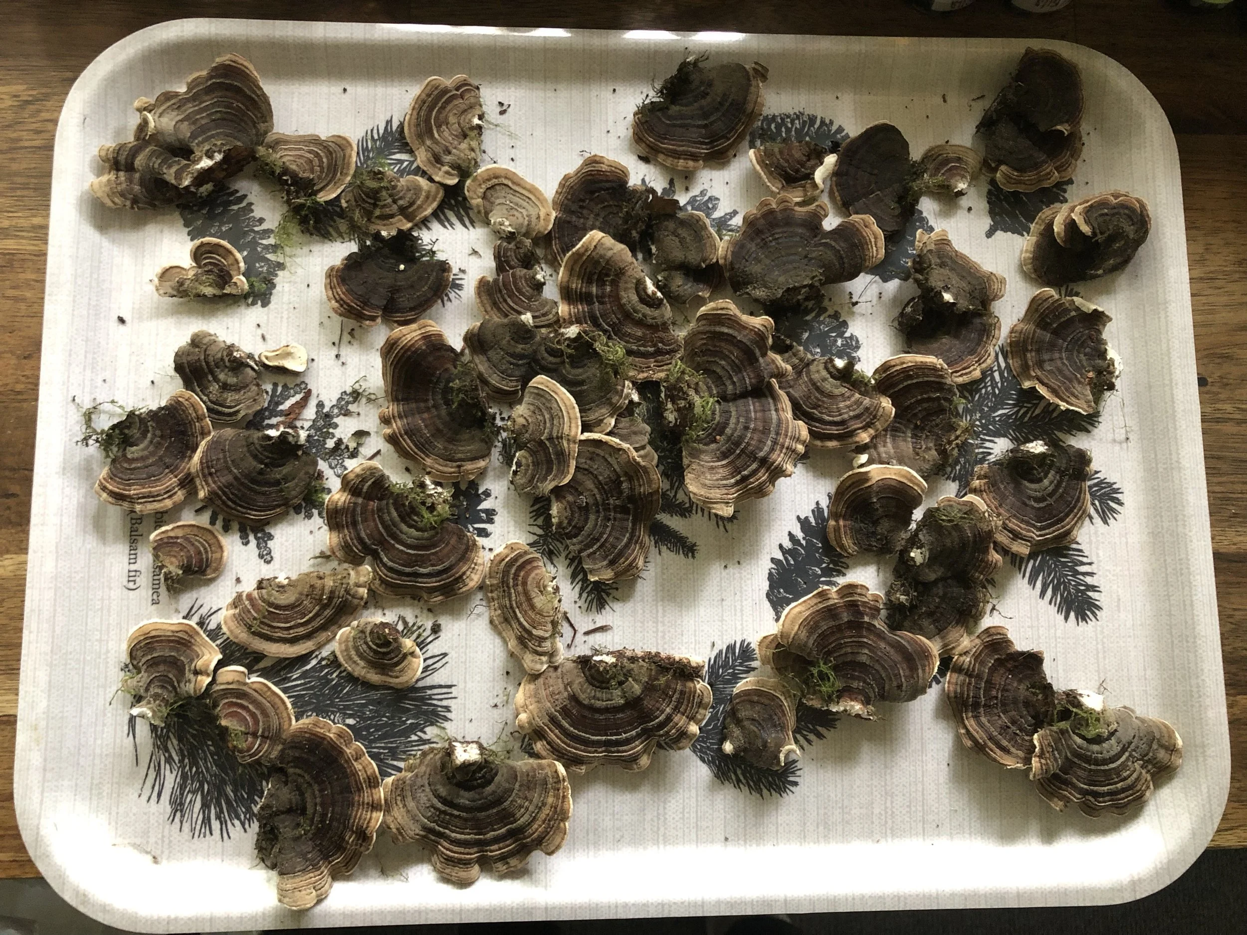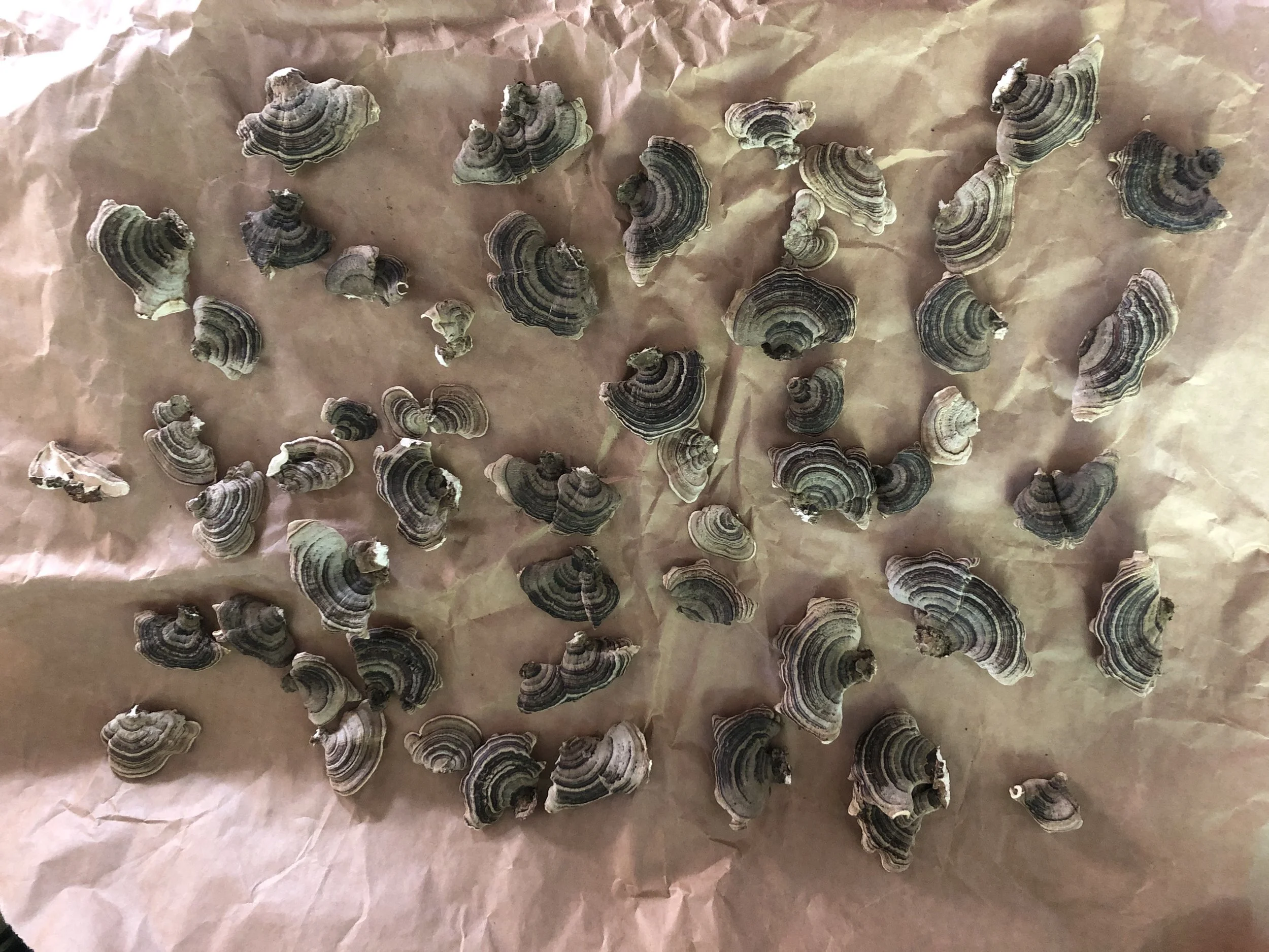 If you are lucky and in the Pacific Northwest area for example, you can gently harvest Turkey Tail from dead trees, fallen logs and hardwood stumps in the forest. Take care when doing so, they are pretty distinct when it comes to identification but you really don’t want to harvest the wrong mushroom because well - death.